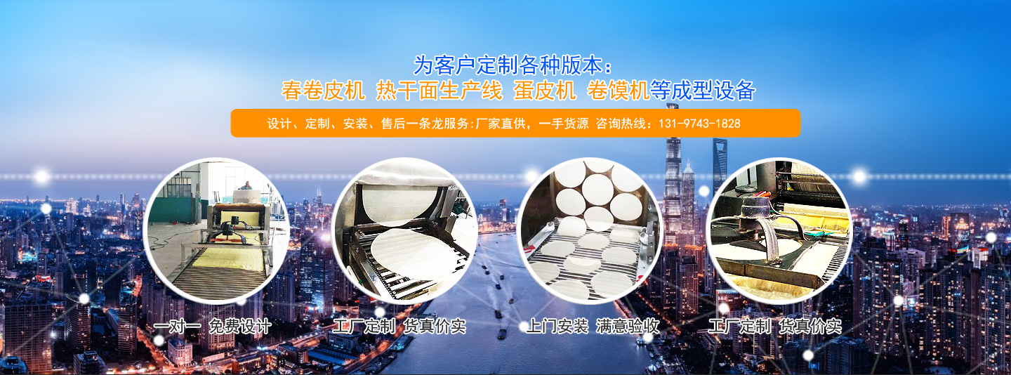 公司地處湖北省鄂州市武昌大道西段,地理位置優(yōu)越,交通方便,緊鄰武九鐵路、316國道。提供春卷機(jī)械、淀粉機(jī)械、豆絲機(jī)械(炕熟)、餅絲機(jī)、烤鴨餅機(jī)、新型仿手工圓形剪餅機(jī)、米粉、魔芋、葛根、豆類粉絲、春卷皮等現(xiàn)代化生產(chǎn)線和快餐豆絲(米粉、魔芋、葛根、薯類粉絲),從工藝到裝備成套設(shè)計(jì)、配套設(shè)計(jì)、開發(fā)制造、安裝調(diào)試及加工技術(shù)一系列服務(wù),憑借多年的生產(chǎn)經(jīng)驗(yàn)和一支符合現(xiàn)代要求的員工隊(duì)伍,使我們的系列淀粉機(jī)械、豆絲機(jī)械、米粉粉絲機(jī)械覆蓋全國20多個省市。